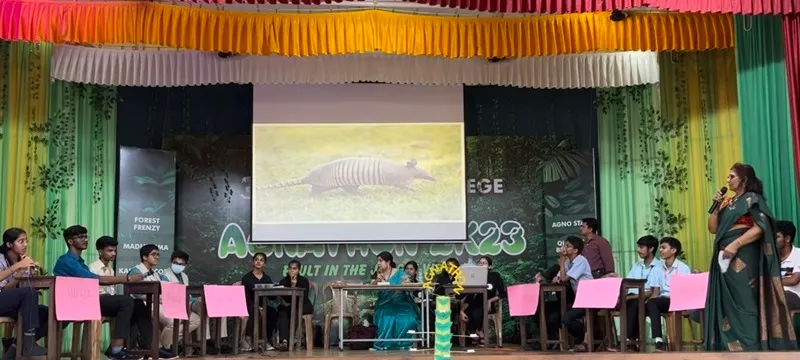 The valedictory of the fest was presided over by Mr P Shreedhar, Asst. Conservator of Forests, Mangalore Sub-division. He shared insightful thoughts on why the theme of jungle is important in the current context due to the adverse climatic conditions and spoke on the need to safeguard the environment. He urged the students to plat a sapling on their birthdays to conserve the planet for posterity Mrs AvithaDSouza Dept. of Psychology welcomed the audience and introduced the guest of honour. Mrs PramilaDSouza, Department of English was the emcee on the occasion, Ms Gauthami rendered the vote of thanks. The fest was chock-a-bloc with several exciting competitions like Agno Star, Quizzee Bee Buzz, Spring Gala, Aquanatura, Forest Frenzy, Madhurima, Kaleidoscope, Jungle Jamboree