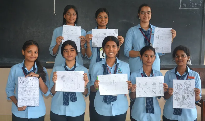 The Department of Chemistry organized the "CHEMTOON" Cartoon Making Competition, on August 23, 2024, focusing on the theme "Safety in Chemistry Laboratory." The event aimed to raise awareness about the importance of safety practices in the laboratory through the creative medium of cartoons. Students from various classes enthusiastically participated, bringing their unique perspectives and artistic skills to the competition.