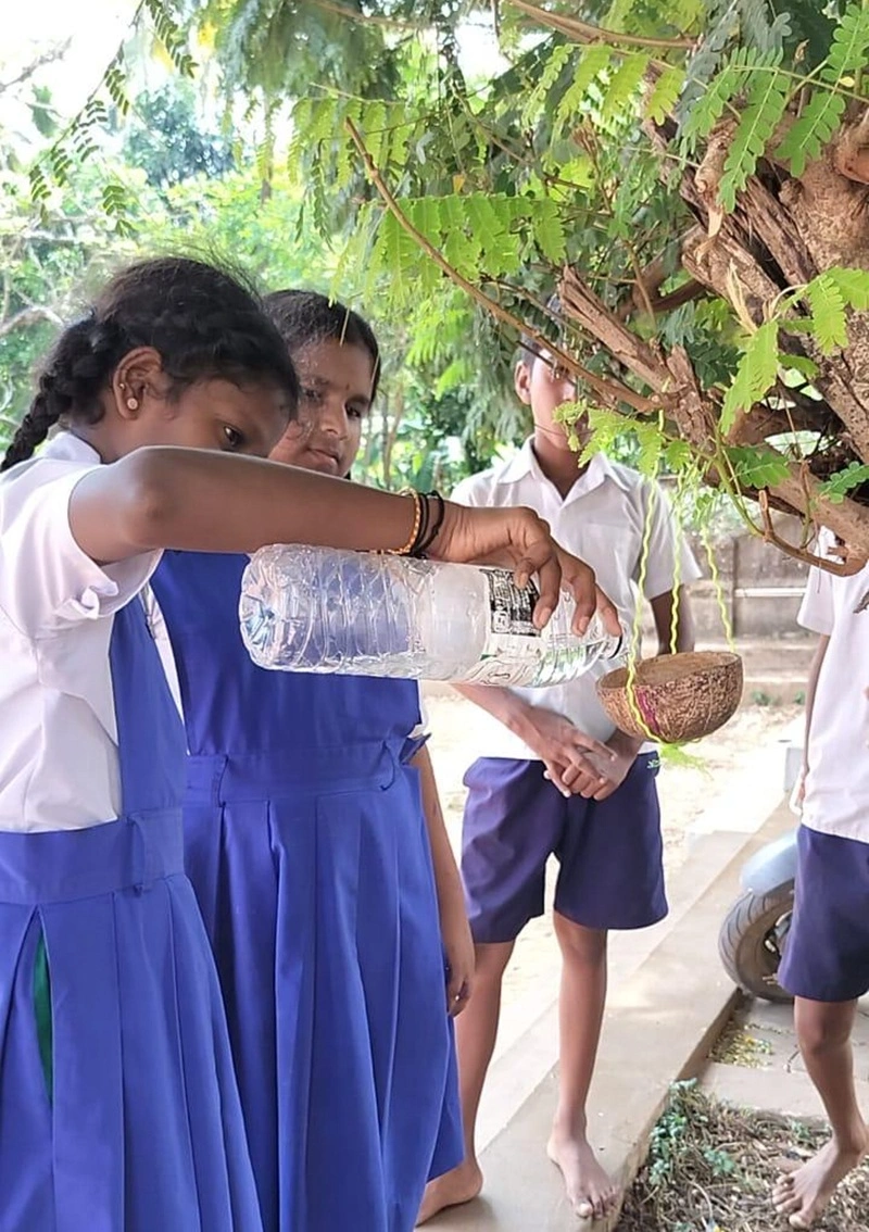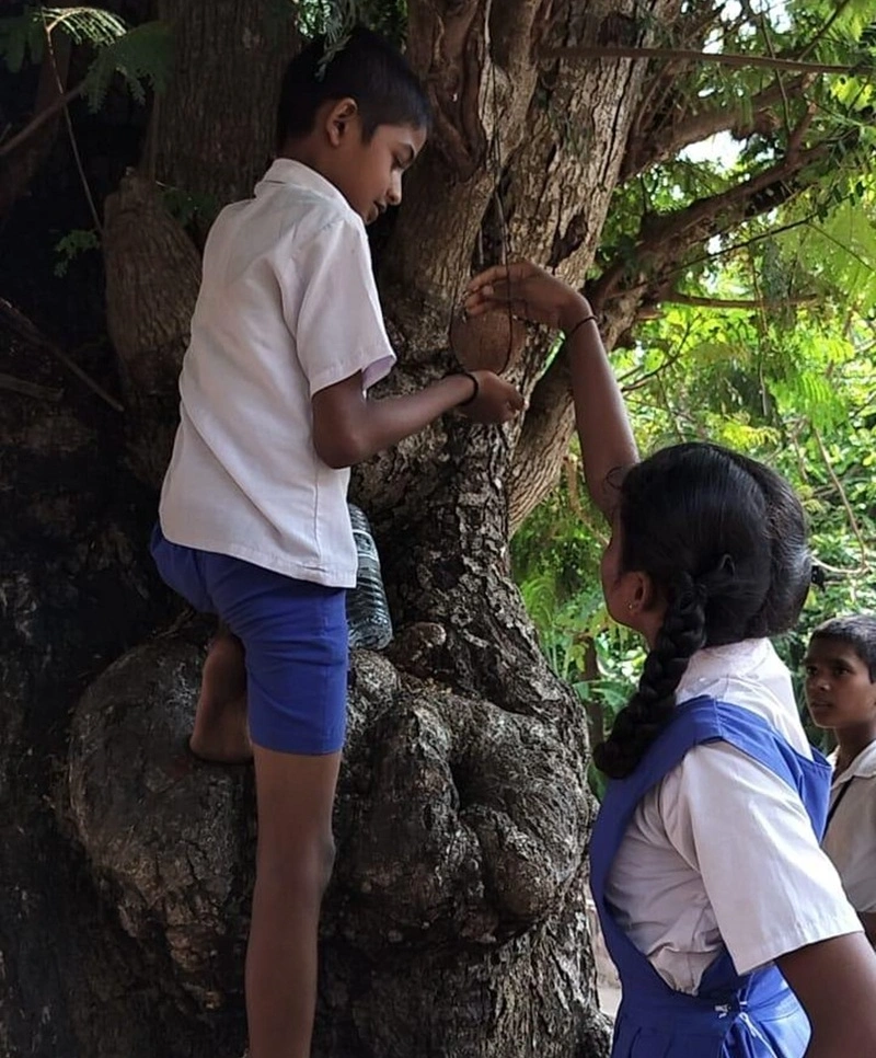 As part of the bird conservation session, students prepared bird feeders and installed them