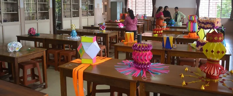 Deepavali– The Festival of Lights was celebrated in St Agnes PU College with much jubilation. A ‘Lantern Making’ (Goodudeepa making) competition was held for the students of all classes. All the classrooms were lit with diyas and the entrance of the college was decorated with a flower rangoli and lighted diyas. The lanterns made by the students adorned the lobby of the college. The students energetically participated in all the activities conducted on the occasion.