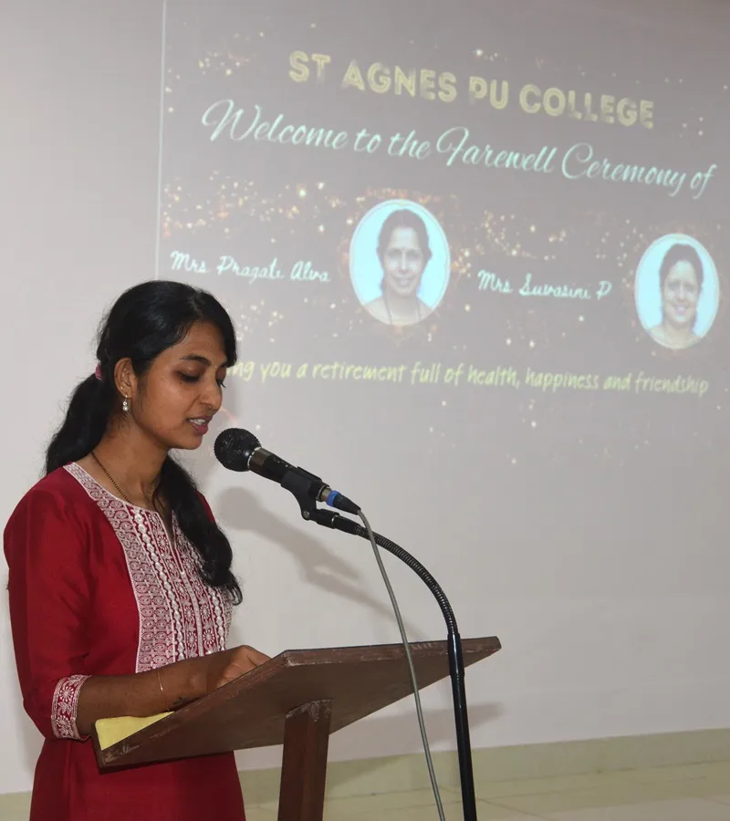 Mrs Pragati and Mrs Suvasini took the stage to share touching anecdotes from their journey at St. Agnes PU College. They expressed gratitude to the management and all those who played a stellar role in shaping their careers and contributed to their professional growth and success.
