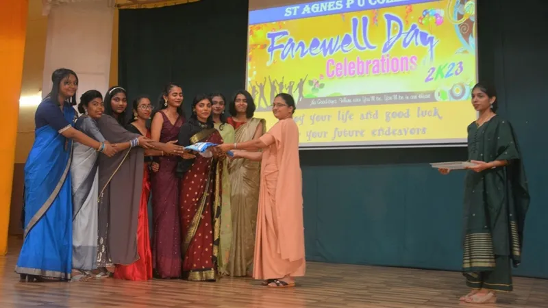 St Agnes PU College organised a farewell programme for the II PUC students on the 20 th January 2023. The programme commenced with an invocation to God followed by foot tapping dances, melodious, emotional singing and a skit depicting the college life performed by the I PU students. A short PPT on the two years of college life of the seniors was also presented on the occasion.