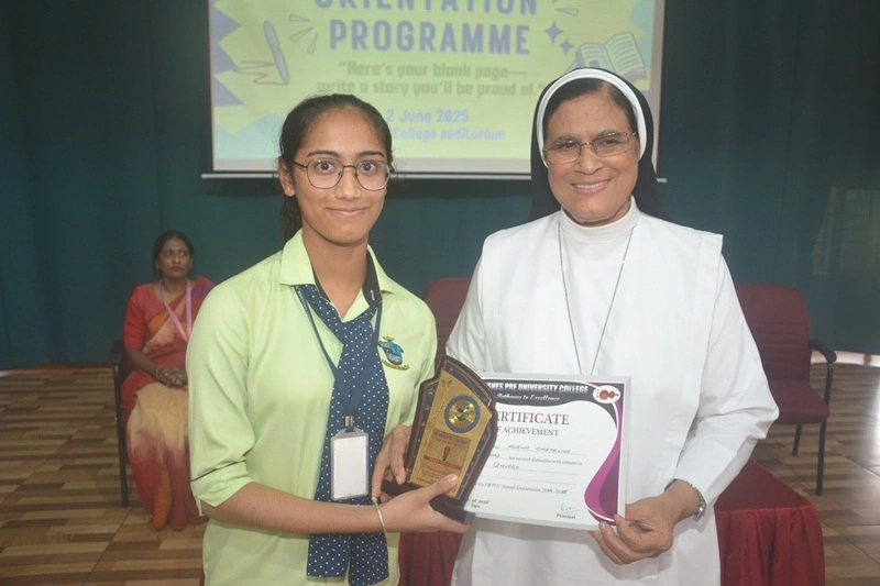 was felicitation of toppers of I PUC annual exam 2024-25 by Sr Dr Maria Roopa Joint