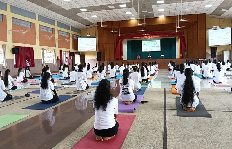 St Agnes PU College celebrated the 11 th International Yoga Day with soulful enthusiasm on June 21, 2025, performing various asanas and pranayama as part of the Ayush Ministry’s syllabus under the theme “Yoga for One Earth, One Health.” The event, led by student MC Sanidhya Shetty, aimed to promote students’ health and well-being in this generation, and bring awareness about the benefits of yoga. Mrs. Jayashree, Mrs. Chaithanya and Mrs. Anita, faculty members of the college, oversaw the yoga session. The theme symbolizes the interconnectedness of all living beings and emphasizes the need for a healthy planet. The program was a resounding success, encouraging students to incorporate yoga into their daily routine, promoting a healthy lifestyle.