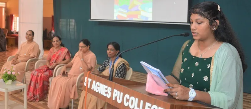 The book exhibition held in connection with the Library Week Celebrations was inaugurated by Dr Vishala BK, Chief Librarian, St Agnes College. She stressed the value of reading books to accomplish lofty goals in life. Books are a veritable gold mine of life skills because it enhances confidence and enables one to face challenges boldly. She expressed her appreciation and congratulated the students for planning and organizing the whole event in a unique and engaging manner.