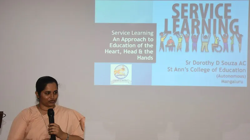 St Agnes PU College is a premier Institution run by The Apostolic Carmel Congregation aiming to educate young women into responsible citizens in the society. The Apostolic Carmel Congregation educational society has introduced the concept of service learning as a part of their curriculum. In this regard St Agnes PU College organised a staff enrichment session on 6th March 2024 on the topic "Service Learning - An Approach to Education of the Heart, Head, and Hands" By Dr. Sr. Dorothy Dsouza, Principal of St. Ann's College of Education (Autonomous) and an esteemed alumna.