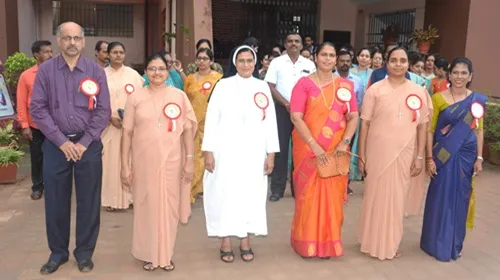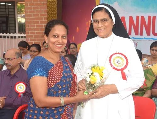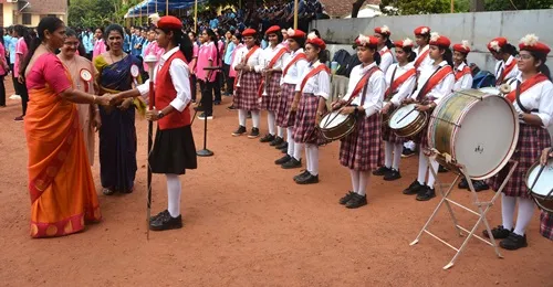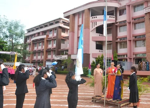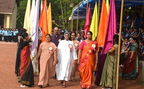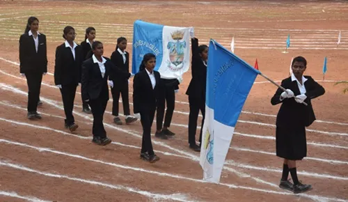 Ms Jeeya and group invoked the blessings of the Almighty. Ms Likeitha, Lecturer in Home Science welcomed and introduced the chief guest. After the solemn hoisting of the flag by Mrs Lilly Pais, she formally met the marching teams who were introduced to her by the Physical Director Mrs Jayashree. Mrs Lilly Pais then addressed the gathering and congratulated the marching teams for their involvement and their discipline. She praised the girls for being champions in an array of sports where they have made a mark for themselves and brought name and fame to the institution. She emphasized the importance of physical fitness and the need to strive for lofty goals.