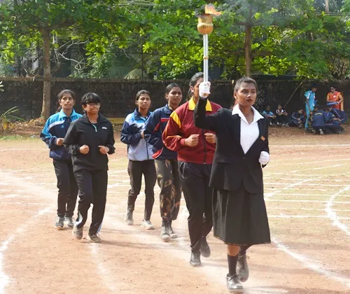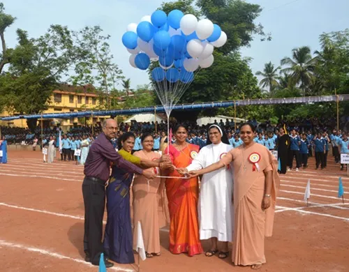 The torch relay led by the sports secretary Ms AnanyaAshokan and the other National Level players Ms Anushka, Ms DikshaKarkera, Ms NahlaFathima, Ms Tanvi JR, MsKadeejaNohawas a beauteous sight to behold and a prideful moment. The state level players marched in a dignified fashion as they carried the flag. The NCC students of Army and Air wing marched in unison to the beat of the band and had an aura of swagger and a can –do spirit. The sports meet was then declared open with the release of the balloons by the chief guest, the Principal SrNorineDSouza and the other dignitaries. Ms AnanyaAshokan administered the oath and energized the teams. Ms Hanaa Mariam and Ms AmekaBedi compered the opening ceremony with poise, while Ms PranamyaDechamma rendered the vote of thanks.