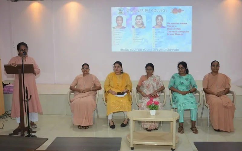 St Agnes PU College management and staff organised a farewell programme for Mrs Namitha Shetty, Lecturer in Chemistry with 27 years of experience, Mrs Jeshma DSouza, Lecturer in English with 12 years of experience and Mrs Sharline DSouza, Lecturer in Statistics with 4 years of experience on 27th March 2023 at 11.30 am. The programme began invoking God’s blessings followed by a welcome accorded by Mrs Pragati Shetty, Lecturer in Physics. Mrs Shailaja spoke eloquently about Mrs Namitha mentioning her hard work, selfless service and contribution to the institution.