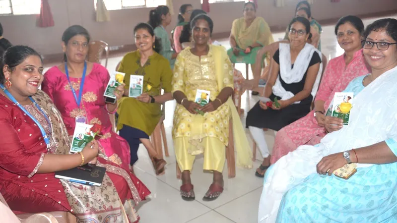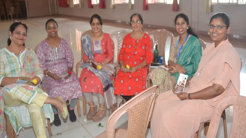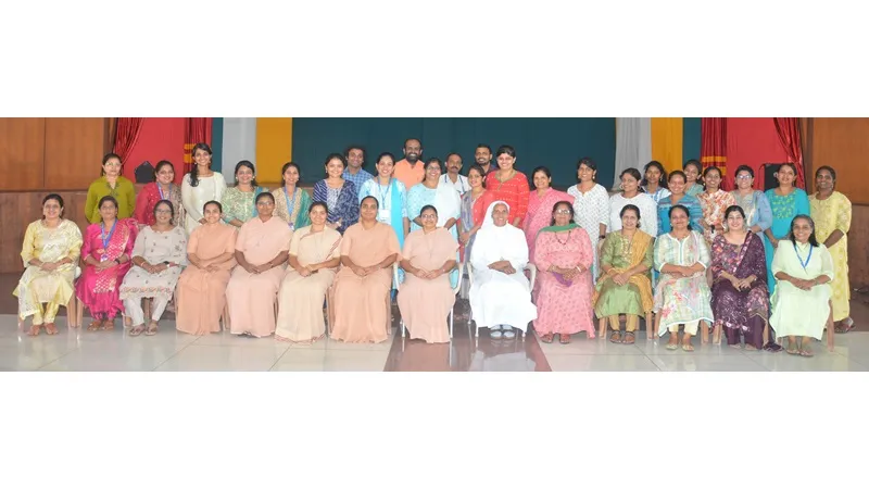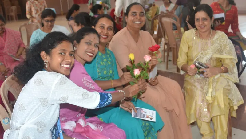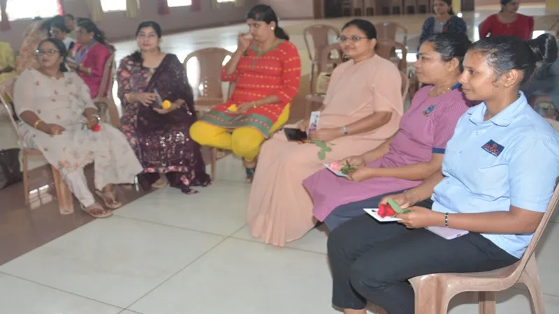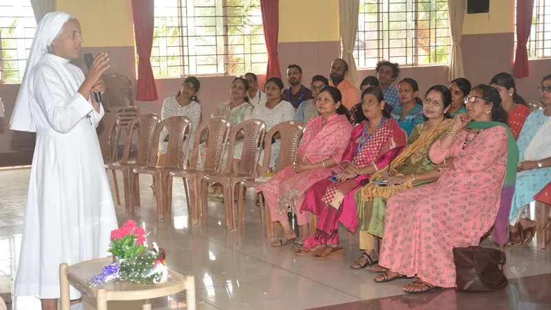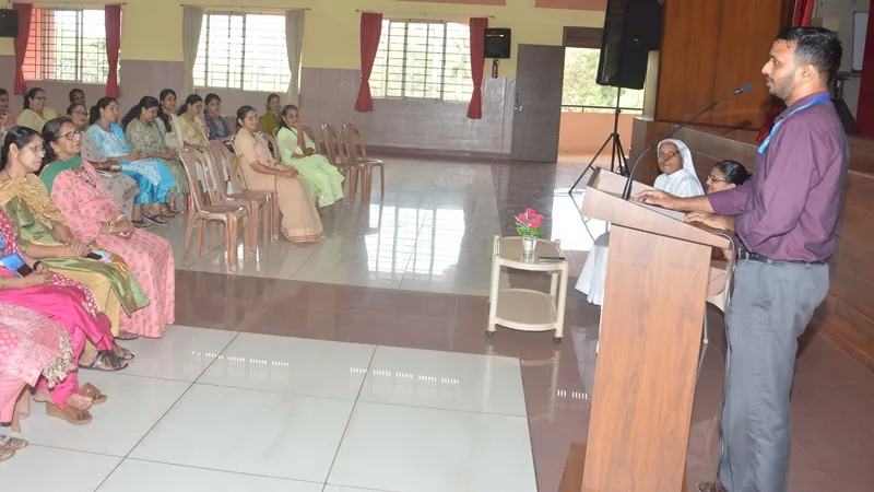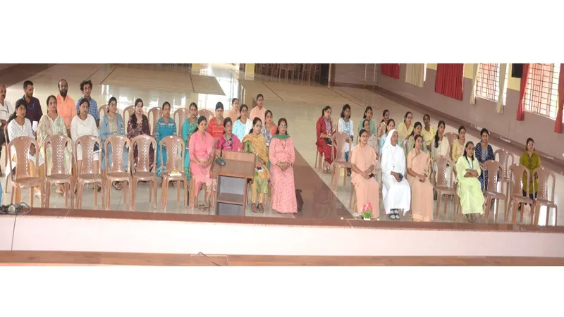 The program commenced with a session on"A Holistic Approach to Health and Wellness.Dr Sr Severine Menezes SAP, Director of Counselling Centre, Mulki was the resource person. The insightful session focused on addressing the physical, mental, and emotional aspects of health emphasizing the importance of self-care and well-being for women. Dr Sr Severine highlighted how it is women who give strength to their families and sustain them in times of turbulence. She taught a few EFT techniques to alleviate physical pain and emotional distress. Mr Joel, Lecturer in Physics welcomed and introduced Dr Sr Severine, while Mrs Jyoti, Lecturer in Humanities rendered the vote of thanks. This was followed by an informal program skillfully organised by the male faculty who went out of their way to salute their female colleagues and make them feel cherished. Mr Francis welcomed all the women and compered the program. A floral welcome and special cards highlighting the unique aspect of each female staff member set the ball rolling. Spot games and a melodious song by Mr Joel enlivened the session.