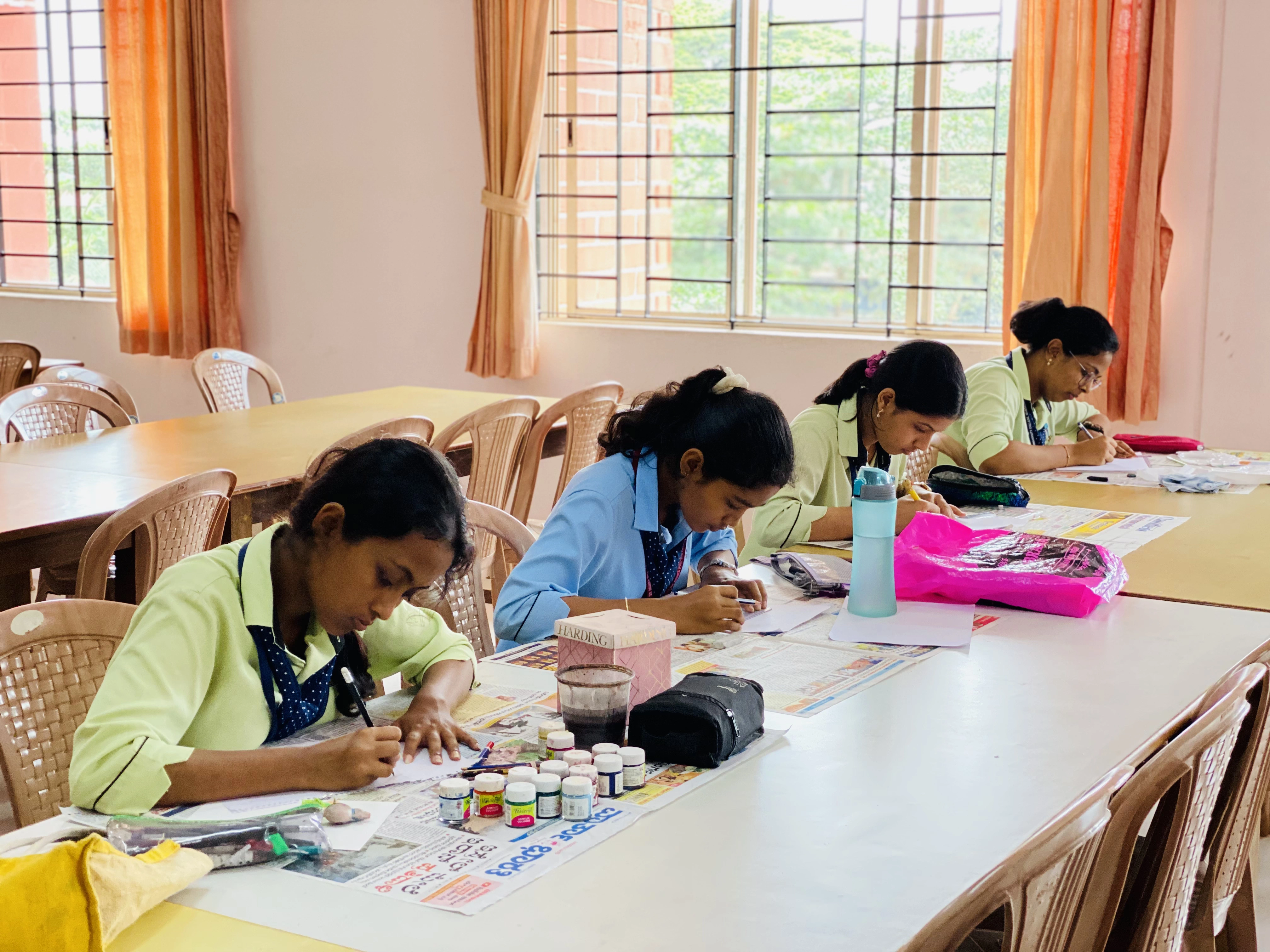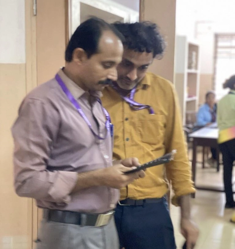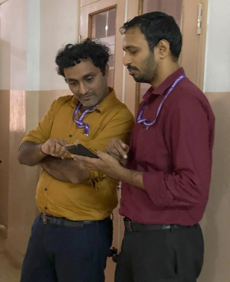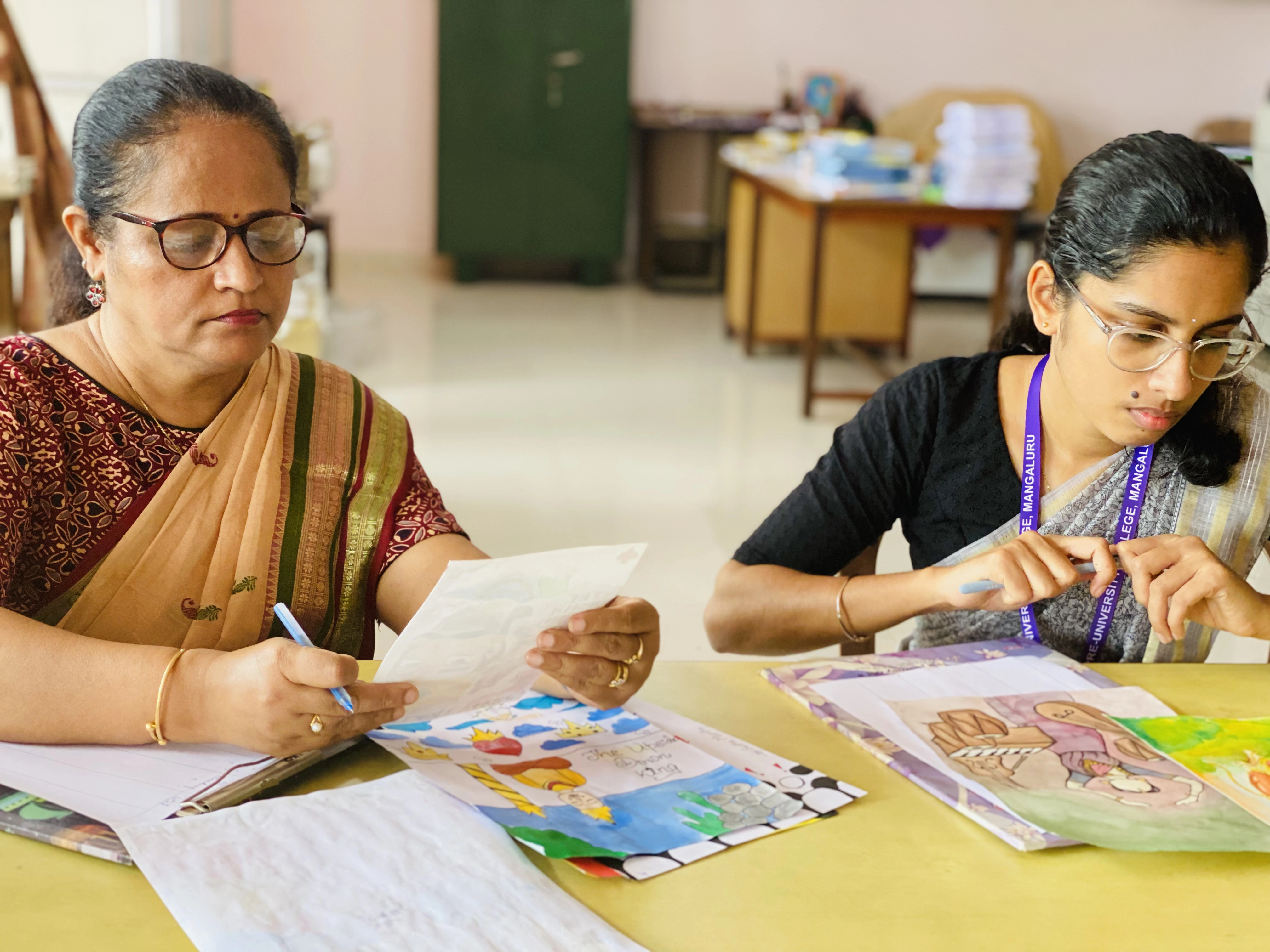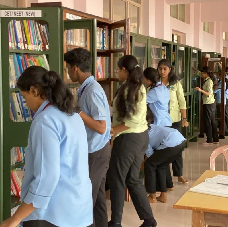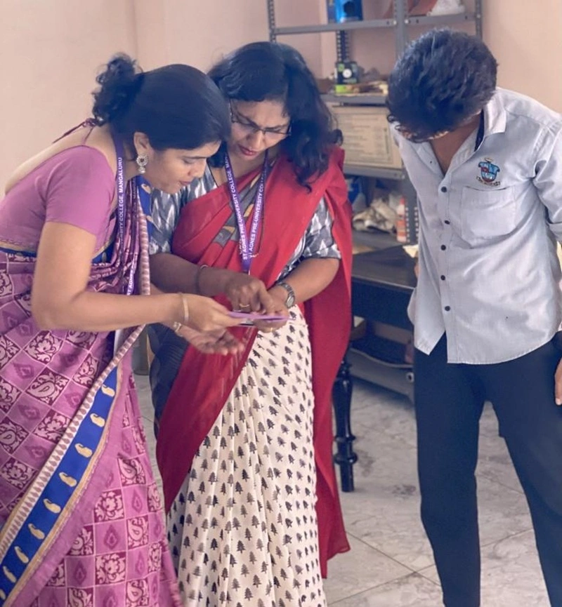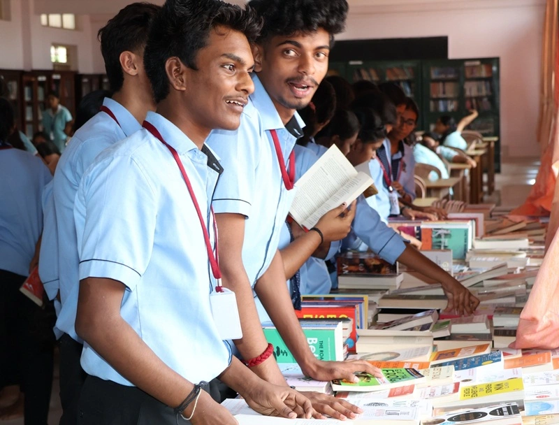 Librarian, along with student volunteers Diya Dechamma and Zubiya Fathma